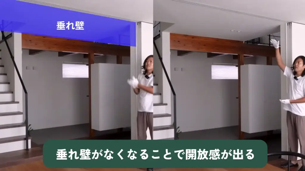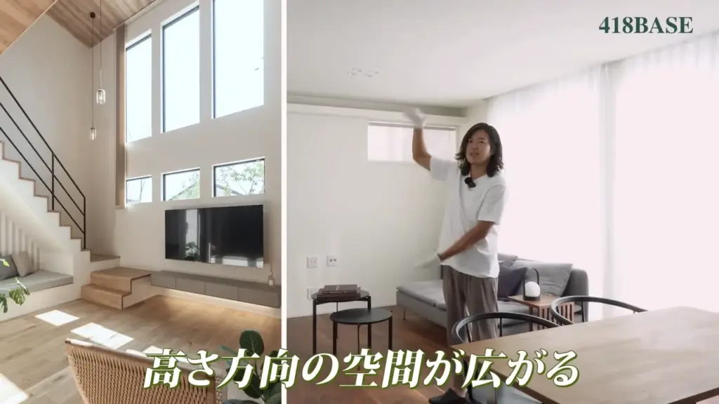 これにより、縦方向の広がりを感じやすくなり、空間がより開放的に見えます。