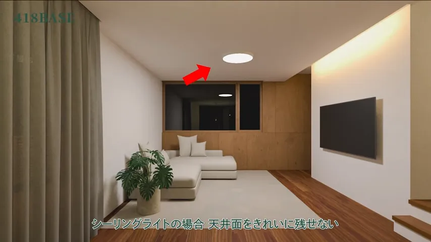 一方でシーリングライトは、照明器具を天井に直接設置するため、どうしても視線が照明に集まりやすく、天井を低く感じさせてしまいます。