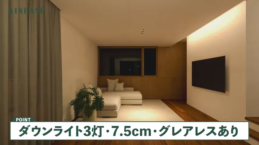 リビングを癒しの空間と捉え、夜に落ち着いて過ごしたい方には、【ダウンライト3灯・直径7.5㎝・グレアレスあり】のプランがおすすめです。