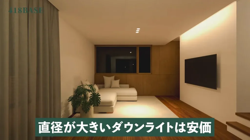 直径10cmのダウンライトは、1灯あたり本体価格や施工費が安く、灯数を絞ることで予算を抑えやすくなりますよ。