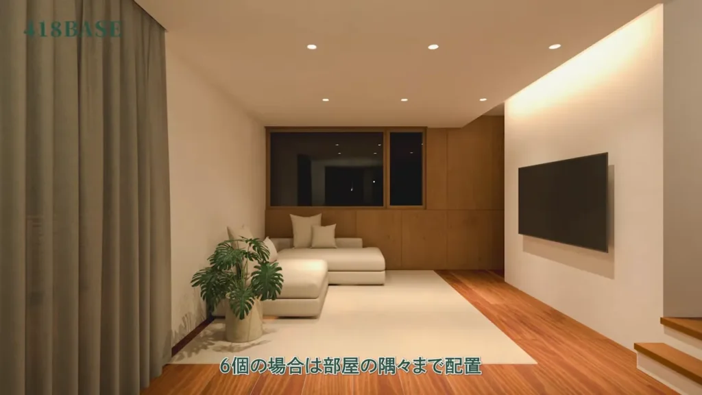 この記事では、8畳リビングのダウンライトの選び方と、空間をワンランクアップさせる照明計画のコツを解説しました。