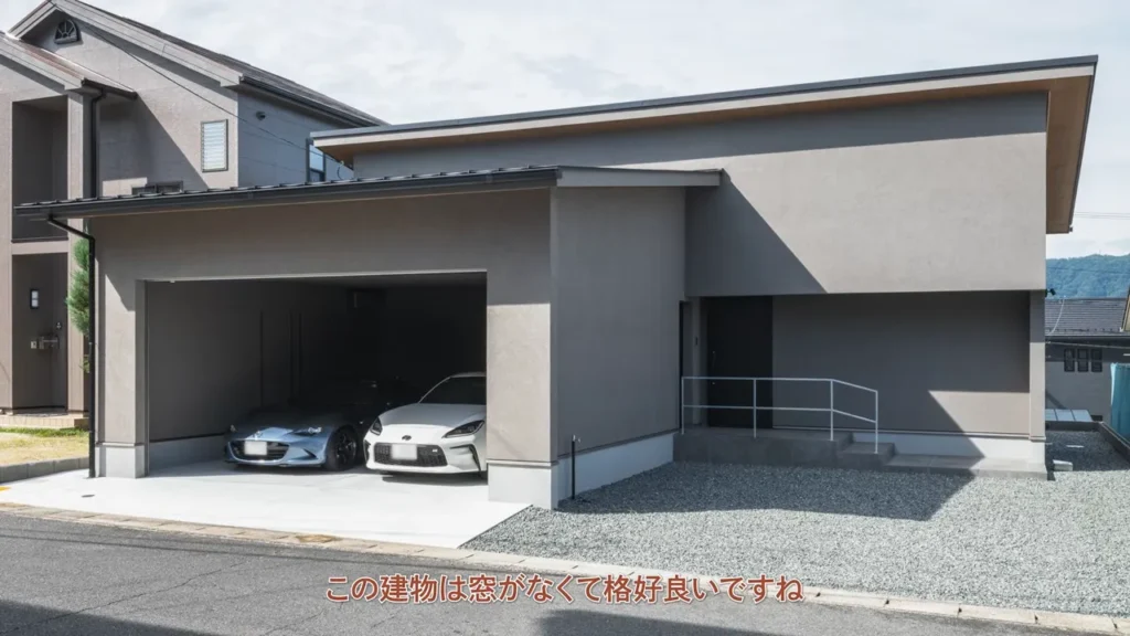 窓がないことで外観はすっきり整い、シンプルで美しいデザインを実現しています。