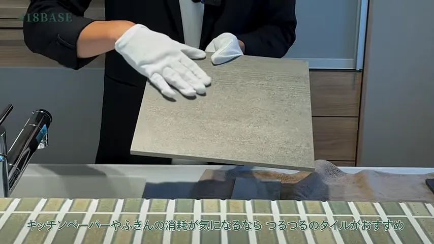 ただし、ザラザラとした質感のタイルはマットな風合いの良さがある一方で、表面がやや粗いため汚れが落ちにくく、ふきんの消耗も早いので注意が必要ですよ。
