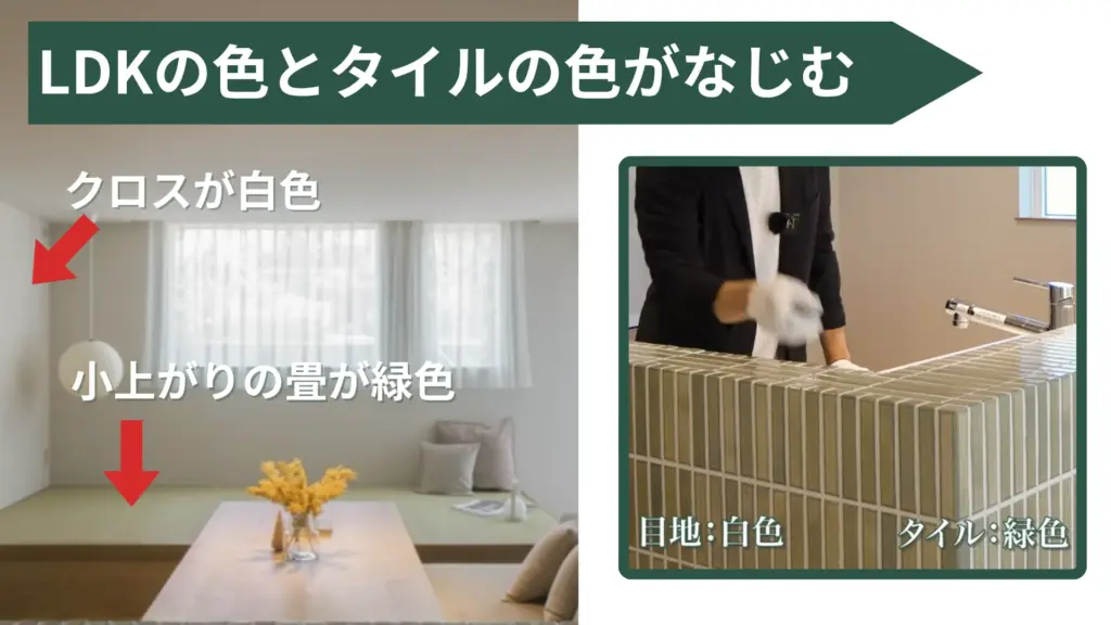 腰壁に使うタイルの色は、LDK全体の色と調和する色を選ぶと、空間全体がまとまっておしゃれに見えます。