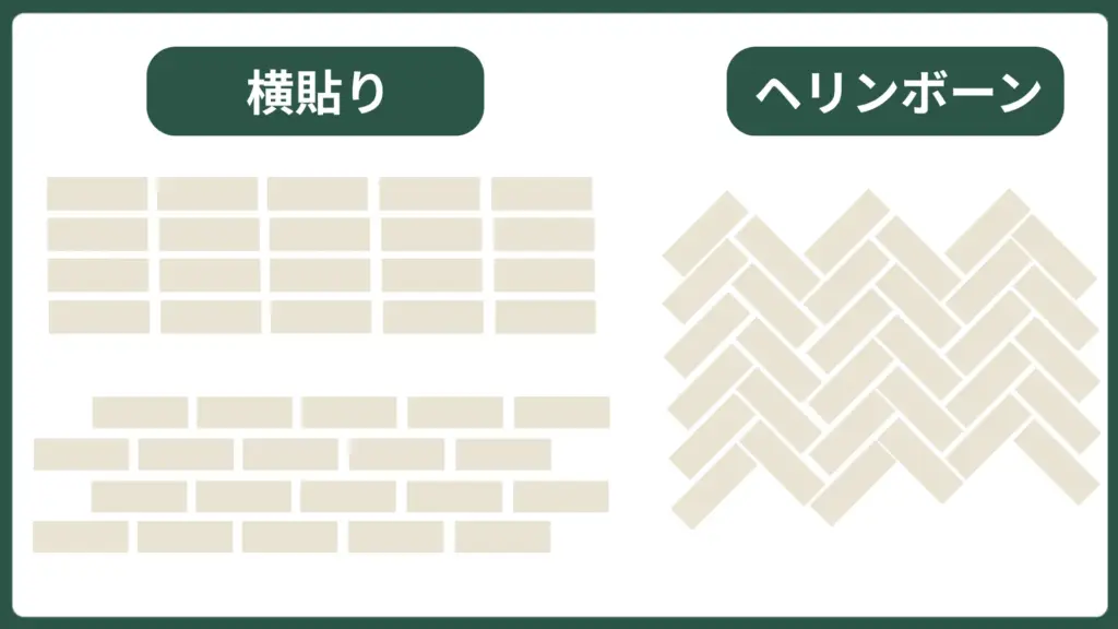 同じ色や形のタイルでも、貼り方によって見え方が変わります。