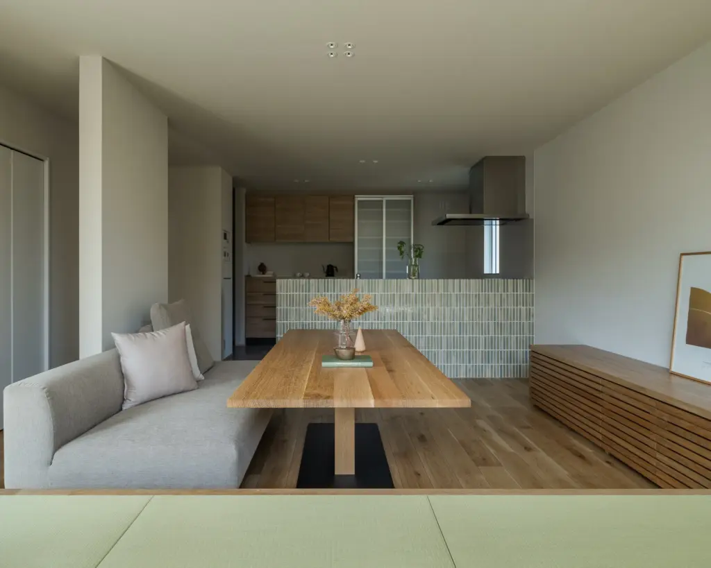 急な来客時も生活感を抑えつつ、美しいタイルの質感がLDK全体の雰囲気を上質に演出してくれるでしょう。