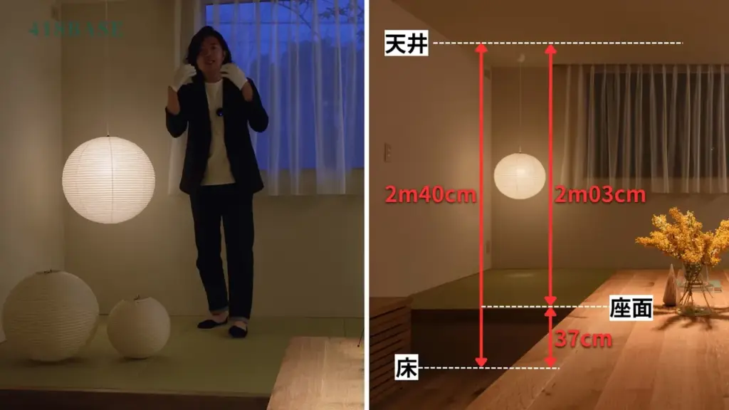 設置したのは、畳の小上がりスペースがあるリビングで、使用したペンダントライトは、イサムノグチの「AKARI」です。