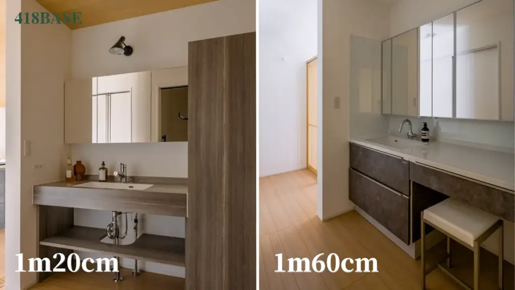 横幅が1200mm以上ある洗面台なら、2人並んでも使いやすく、ゆとりがあるため見た目にもバランスの取れた空間をつくりやすいからです。